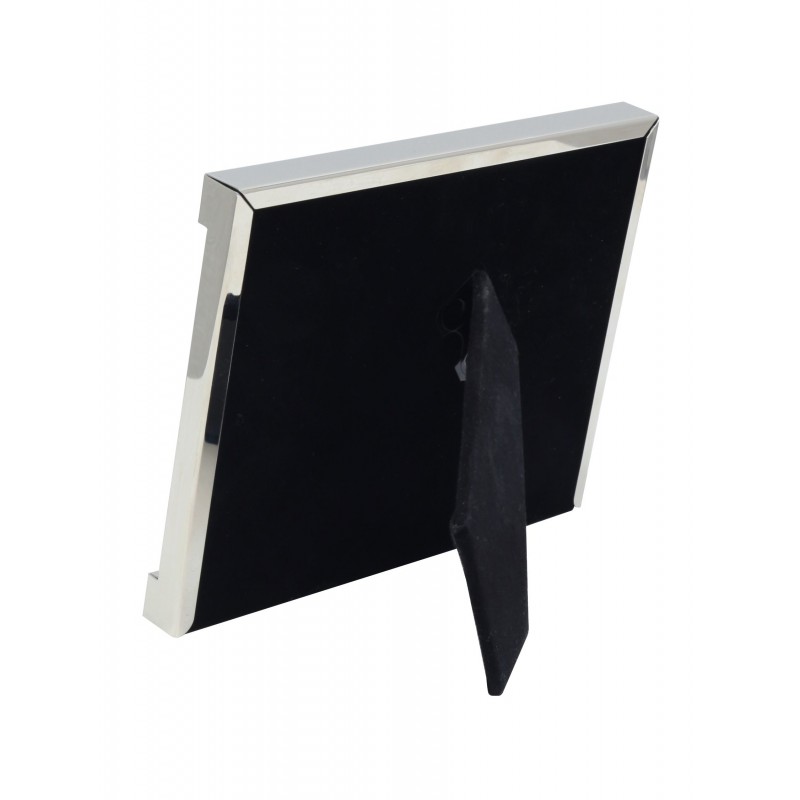 Wunderschöner Bilderrahmen mit einer glänzender silbernen Ober- und Unterseite mit einigen Schmucksteinen. Hochwertig verarbeiteter Metallrahmen mit Klarglas und mit einer schwarzen Rückwand inklusive Aufsteller versehen.