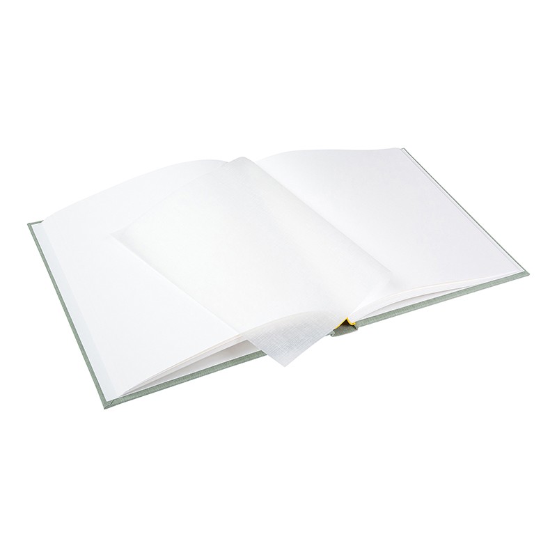 Uni-farbenes Fotoalbum als Fotobuch in feinem Leinen gebunden. Das Fotoalbum misst eine Größe von 30 x 31 cm und verfügt über 60 weißen Seiten mit Pergamin.