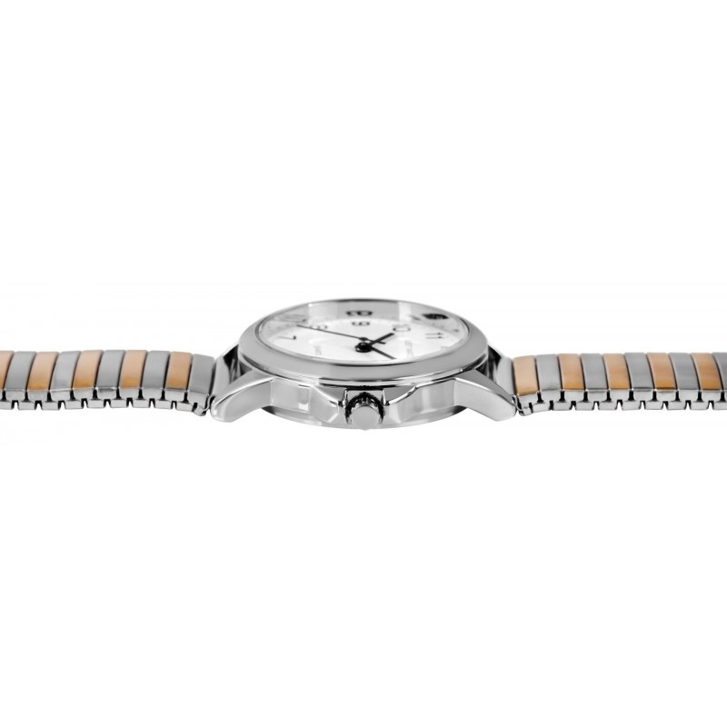 Die analoge 3-Zeiger Damenarmbanduhr verfügt über das hochwertige Quarzuhrwerk Miyota 2035. Das Edelstahlzugband ist am Anstoß 14 mm breit und lässt sich aufgrund des flexiblen Armbandes besonders bequem und einfach über das Handgelenk ziehen. Die Gesamtlänge der Uhr beträgt 19,5 cm. Das Metallgehäuse mit Mineralglas hat eine Abmessung von 29 mm im Durchmesser und eine Gehäusehöhe von 8 mm. Der Gehäuseboden ist aus Edelstahl gefertigt und die Uhr hat eine Wasserdichtigkeit von 3 bar. Das Zifferblatt ist einfarbig und die Zeiger und Ziffern haben dieselbe Farbe. Die großen Ziffern machen das Ablesen der Uhrzeit besonders leicht und lassen das praktische Damenmodell zu einem beliebten Begleiter werden.