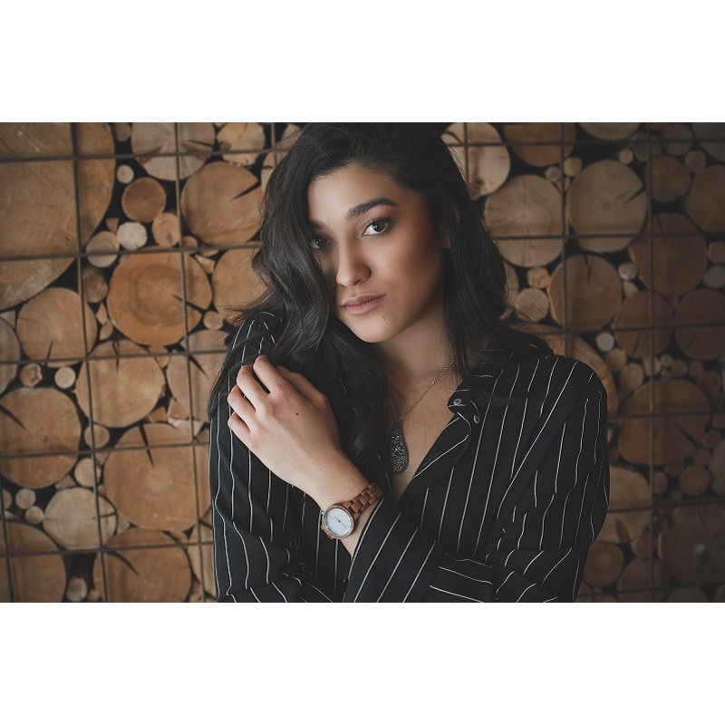 Das Modell MARMO wird aus dunklem Sandelholz gefertigt. Die Besonderheit dieser Uhr, ist ganz klar das Zifferblatt aus Südtiroler Marmor, das sie sofort zu einem Hingucker macht.