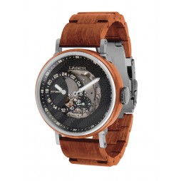 Der Gehäusekorpus und die Schließe bestehen aus Edelstahl, das Armband aus einer Kombination aus Edelstahl und Ebenholz. Das harte Mineralglas schützt die Uhr vor Beschädigung. Außerdem ist sie Spritzwasserfest, daher für Sport geeignet; sollte jedoch beim Schwimmen, Tauchen, Duschen und Hände waschen abgenommen werden. Durch die Möglichkeit die einzelnen Kettenglieder zu entnehmen ist die Größe verstellbar und daher geeignet für jedes Handgelenk. Imprägniert mit hautfreundlichem Material ist sie auch geeignet für Allergiker. Sie bedarf keiner speziellen Pflege. Die Uhr wird in einer schönen Holzbox geliefert.