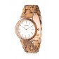 Der Gehäusekorpus besteht aus einer Kombination von Edelstahl und Zebranoholz, das Armband hingegen aus 100% Zebranoholz. Die Schließe ist aus Edelstahl und das Zifferblatt wird aus weißem Marmor hergestellt. Das harte Mineralglas schützt die Uhr vor Beschädigung. Außerdem ist sie Spritzwasserfest, daher für Sport geeignet; sollte jedoch beim Schwimmen, Tauchen, Duschen und Hände waschen abgenommen werden. Durch die Möglichkeit die einzelnen Kettenglieder zu entnehmen ist die Größe verstellbar und daher geeignet für jedes Handgelenk. Imprägniert mit hautfreundlichem Material ist sie auch geeignet für Allergiker. Sie bedarf keiner speziellen Pflege. Die Uhr wird in einer schönen Holzbox geliefert.