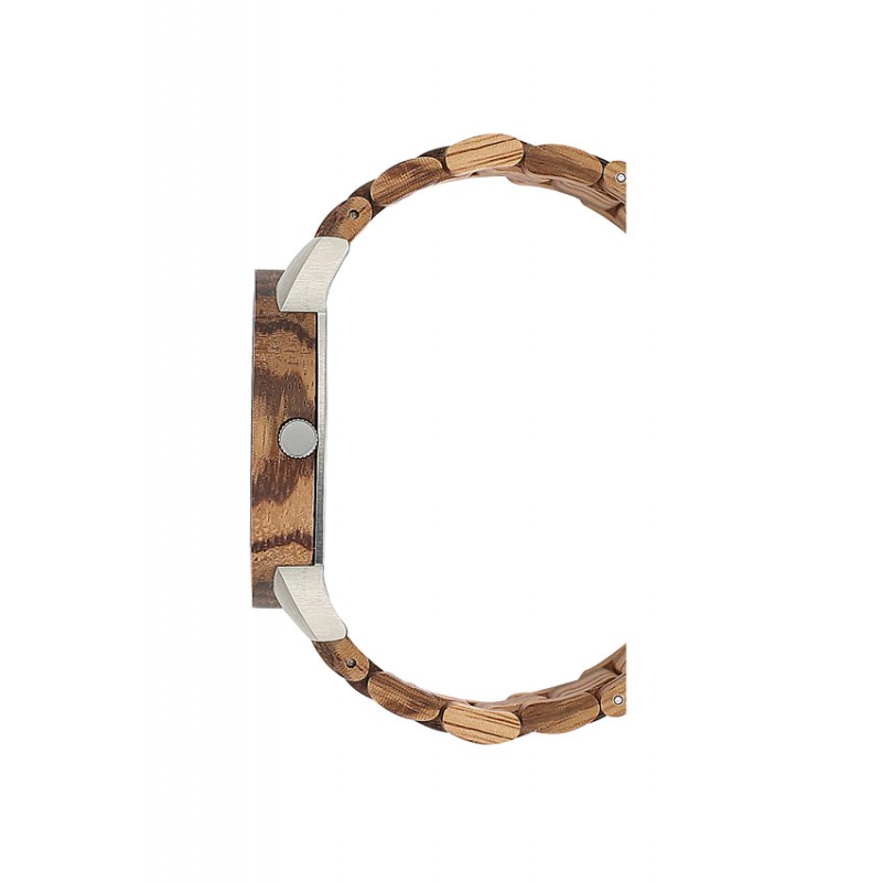 Der Gehäusekorpus sowie das Armband bestehen aus 100% Zebranoholz und sind aus einem Stück Holz gefertigt. Die Schließe dagegen ist aus Edelstahl. Das harte Mineralglas schützt die Uhr vor Beschädigung. Außerdem ist sie Spritzwasserfest, daher für Sport geeignet; sollte jedoch beim Schwimmen, Tauchen, Duschen und Hände waschen abgenommen werden. Imprägniert mit Haut-freundlichem Material ist sie auch geeignet für Allergiker. Sie bedarf keiner speziellen Pflege. Die Uhr wird in einer schönen Holzbox geliefert.