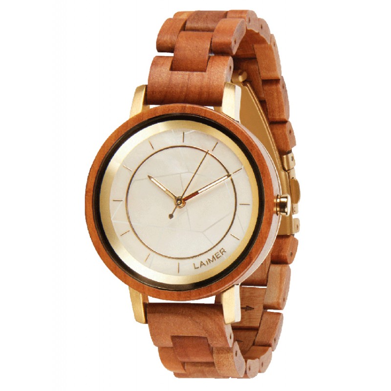 Unsere KASSSANDRA wurde inspiriert von den herrlichen Farben der Muscheln vor der Amalfi Küste. Sie ist dank ihrem weißen Perlmutt Zifferblatt, den goldenen Akzenten und dem hellen Apfelholz ein richtiger Blickfang. Besonders raffiniert ist hier das Muster im Zifferblatt: es besteht aus recycelten Perlmutt Splittern. Außerdem ist sie leicht wie eine Feder und äußerst angenehm zu tragen.