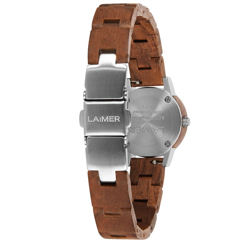 Der Gehäusekorpus sowie das Armband bestehen aus 100% Nussholz. Die Schließe und der Gehäusekorpus dagegen sind aus Edelstahl. Das harte Mineralglas schützt die Uhr vor Beschädigung. Außerdem ist sie Spritzwasserfest, daher für Sport geeignet; sollte jedoch beim Schwimmen, Tauchen, Duschen und Hände waschen abgenommen werden. Durch die Möglichkeit die einzelnen Kettenglieder zu entnehmen ist die Größe verstellbar und daher geeignet für jedes Handgelenk. Imprägniert mit hautfreundlichem Material ist sie auch geeignet für Allergiker. Sie bedarf keiner speziellen Pflege. Die Uhr wird in einer schönen Holzbox geliefert.