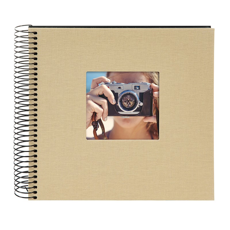 Größe: 20x20 cm | 40 schwarze Seiten (20 Blatt) | ca. 40 Fotos im Format 10x15 cm | Material: echtes Leinen | Albumart: Spiralbindung | mit Bildausschnitt