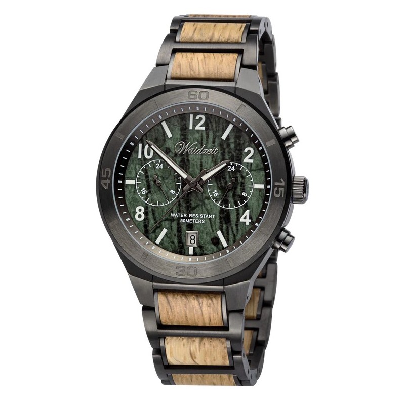 Entdecken Sie die einzigartige Saturn Holzuhr, die durch ihre harmonische Kombination aus edlen Materialien und innovativen Funktionen überzeugt. Diese Waidzeit Herrenuhr vereint Stil, Präzision und Natur – ein echtes Meisterwerk für alle, die das Besondere schätzen.